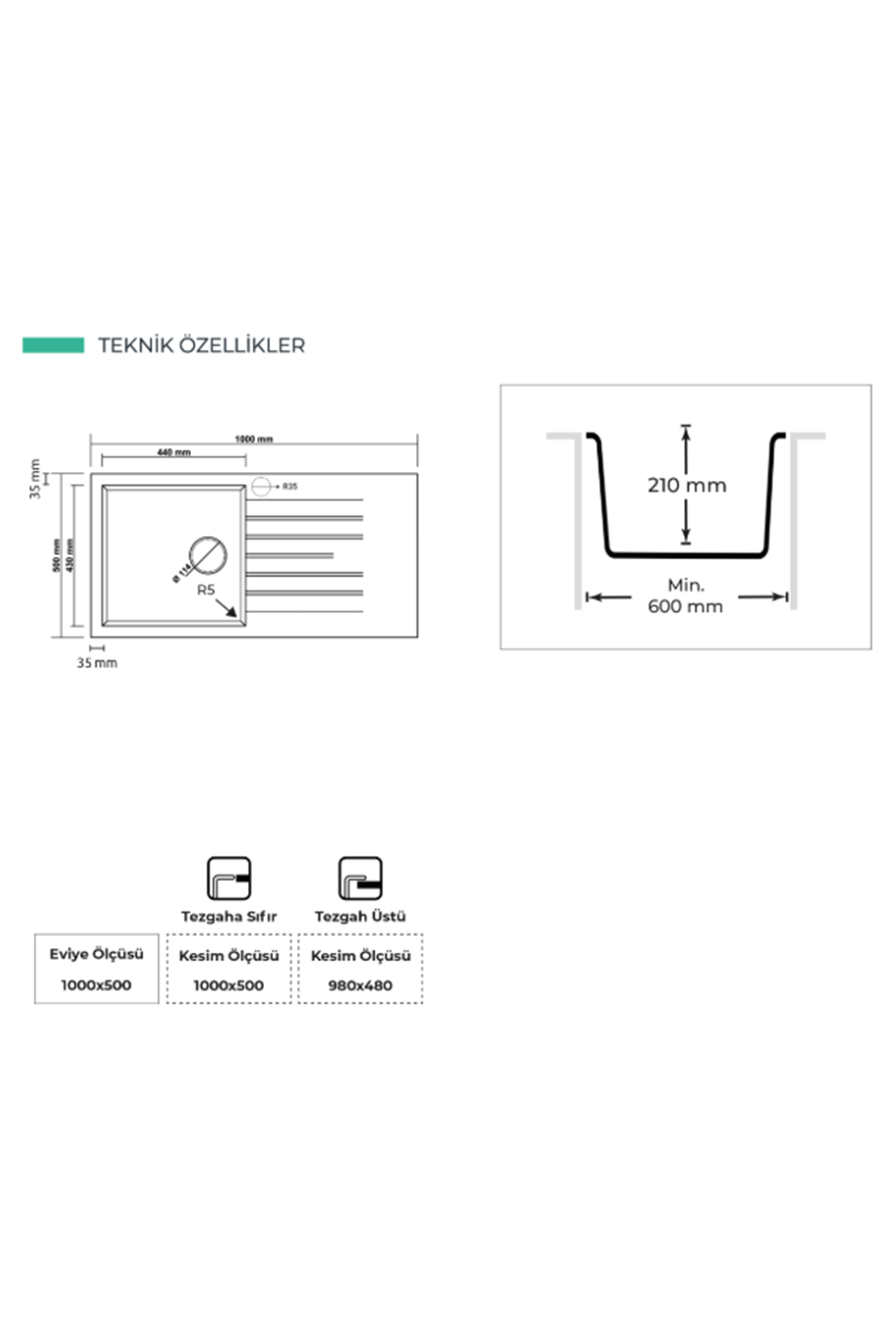 REALSTONE P015 LAODIKYA 100 XL GRANİT EVİYE (ANTHRACITE)